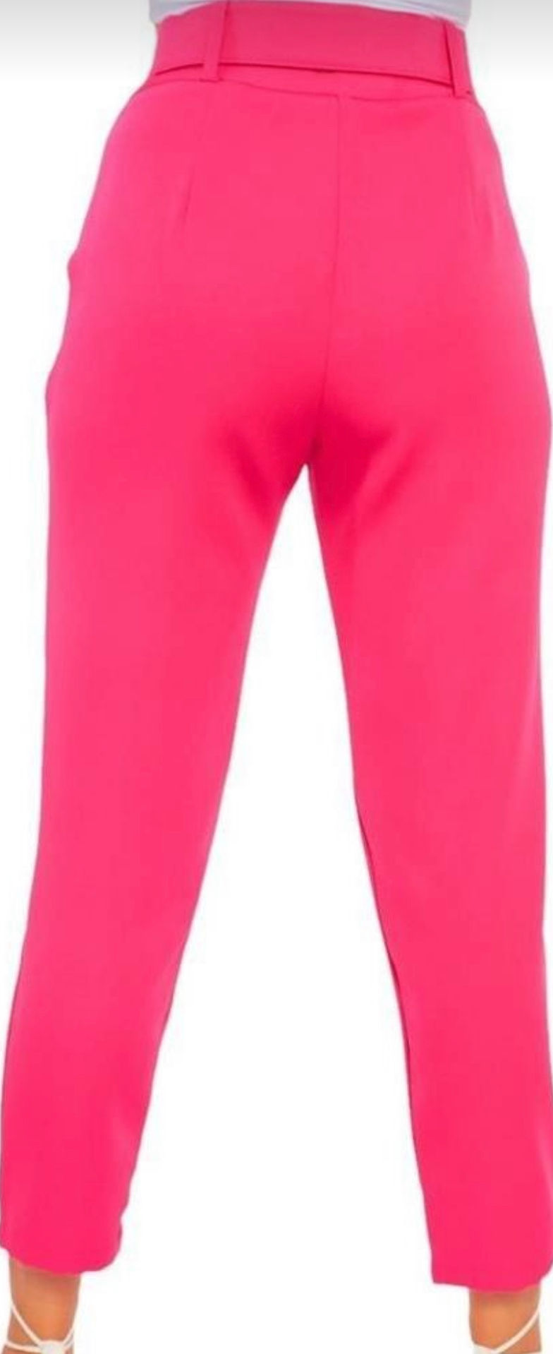 Calça Feminina Clochard Alfaiataria Com Cinto Forrado Pink
